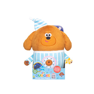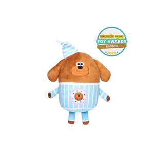 Snuggle up to Sleepy Time Duggee with his gentle music, soft glowing lights and Duggee sounds. Perfect for quiet time, nap time or simply calm and cuddles time! Press his hand to hear the iconic Bedtime Song from the Hey Duggee show that fans will instantly recognise along with gentle snoring and woof sounds!