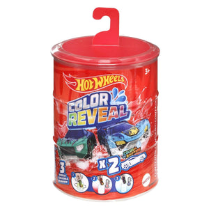 The Hot Wheels colour Reveal 2 Pack of vehicles is loaded with awesome surprises! Inside the barrel drum are two 1:64 scale Hot Wheels colour Reveal cars covered in special colour Reveal coating. For the initial reveal, fill the drum with water and swirl each car around in it until the water changes colour, the pull the car out - the sweet decos hiding underneath are exposed! Want to change its appearance again?