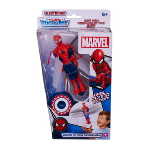 Take Flying Heroes to the next level with the Hover 'n Spin Spider-Man! With real flying action, Spider-Man takes to the air with motorised propellers. Once he's flying, simply place your hand beneath Spidey to guide him back up in the air. Hover 'n' Spin Spider-Man also comes with a USB charging cable and standing base.