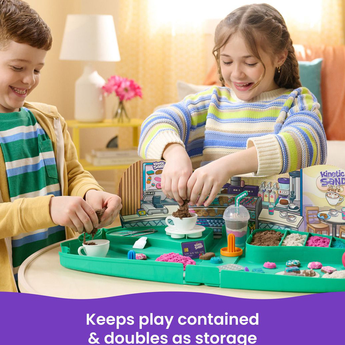 Become a barista with the Kinetic Sand Café Case. This playset will spark imagination and creativity as kids sculpt, shape and mould their own café creations. With 793g Kinetic Sand in 4 vibrant colours (white, brown, teal and shimmer pink), 2 cappuccino cups, a frappe cup, decorative straw cut-outs and more, there’s so many ways to play.