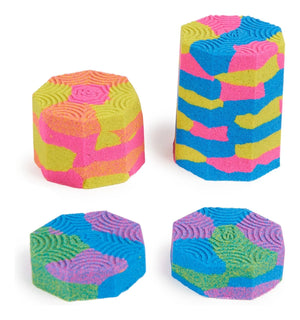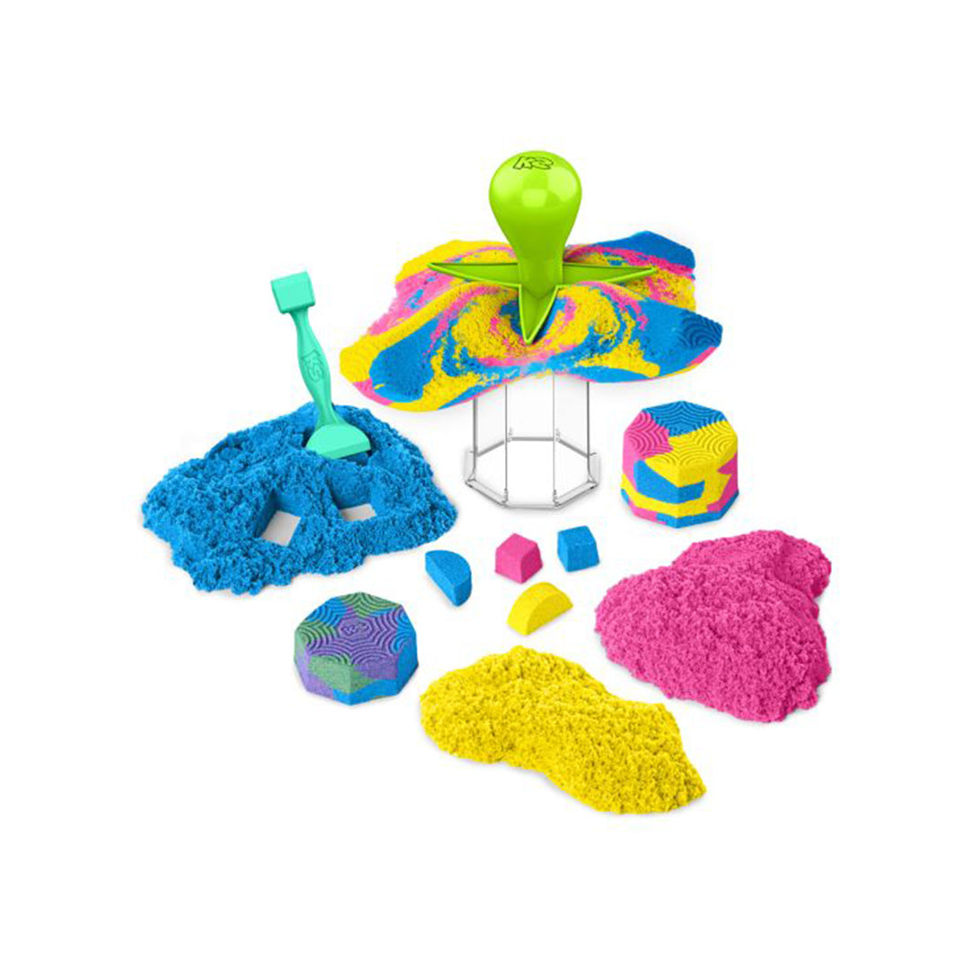 The Kinetic Sand Squish N’ Create will get your creativity flowing. This Kinetic Sand set is packed with everything you need to create sand surprises: a total of 382g of Blue, Yellow and Pink Sand. Let it flow through your hands — it’s so satisfying, you won’t be able to put it down. Attach the squisher handle to different tools, like Squish, Cut and Shape. There’s so many ways to play. Fluff the sand and fill the octagon mould, then use the squish tools to remove the centre. Squish the sand with different tools, mix sand together or layer Kinetic Sand inside the mould. You can play again and again. For even more sandisfying ways to play, look for the 907g Kinetic Sand bulk bags of coloured sand (toys each sold separately). Kinetic Sand is the original magical, mouldable and mesmerising play sand. Better than arts and crafts modelling clay, this sensory sand never dries out, so you can play with Kinetic Sand for hours of tactile independent play. Kinetic Sand is made with natural sand and is non-toxic and hypoallergenic. It magically sticks together and cleans up easily. Kinetic Sand kids’ toys for 3-year-old boys and girls are the perfect gift for kids. Customise your own surprise sand effects with the Kinetic Sand Squish N’ Create Set.