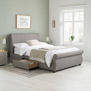 This sophisticated sleigh bed is a timeless classic. With an attractive rolled headboard and footboard, the Lancaster bed is the perfect statement piece for any bedroom.