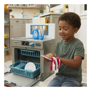 Kids can pretend to do the dishes just like their parents with the super realistic Little Tikes First Dishwasher. This sleek, modern, pretend play dishwasher is packed with interactive features: a working door, a sliding detergent drawer, removable dish racks and a drying mat. Plus, it includes realistic lights and sounds.