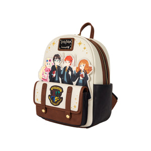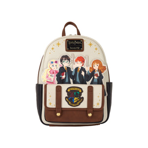 Arrive with class on the first day at Hogwarts™, Harry Potter™ fans! Enchant the halls with this Harry Potter mini backpack, which features a snap front flap with the Hogwarts crest. Above the pocket, you’ll find an applique of classmates Luna Lovegood, Harry Potter, Ron Weasley, and Hermione Granger—all wands at the ready.