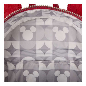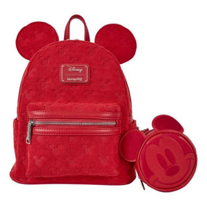 All Mickey, all the time! This bold red mini backpack combines faux leather with terry cloth, featuring an all-over Mickey head silhouette burnout design. With playful 3D ears and a matching Mickey-shaped coin bag, this accessory is a must-have for fans who love to show off their Disney style.