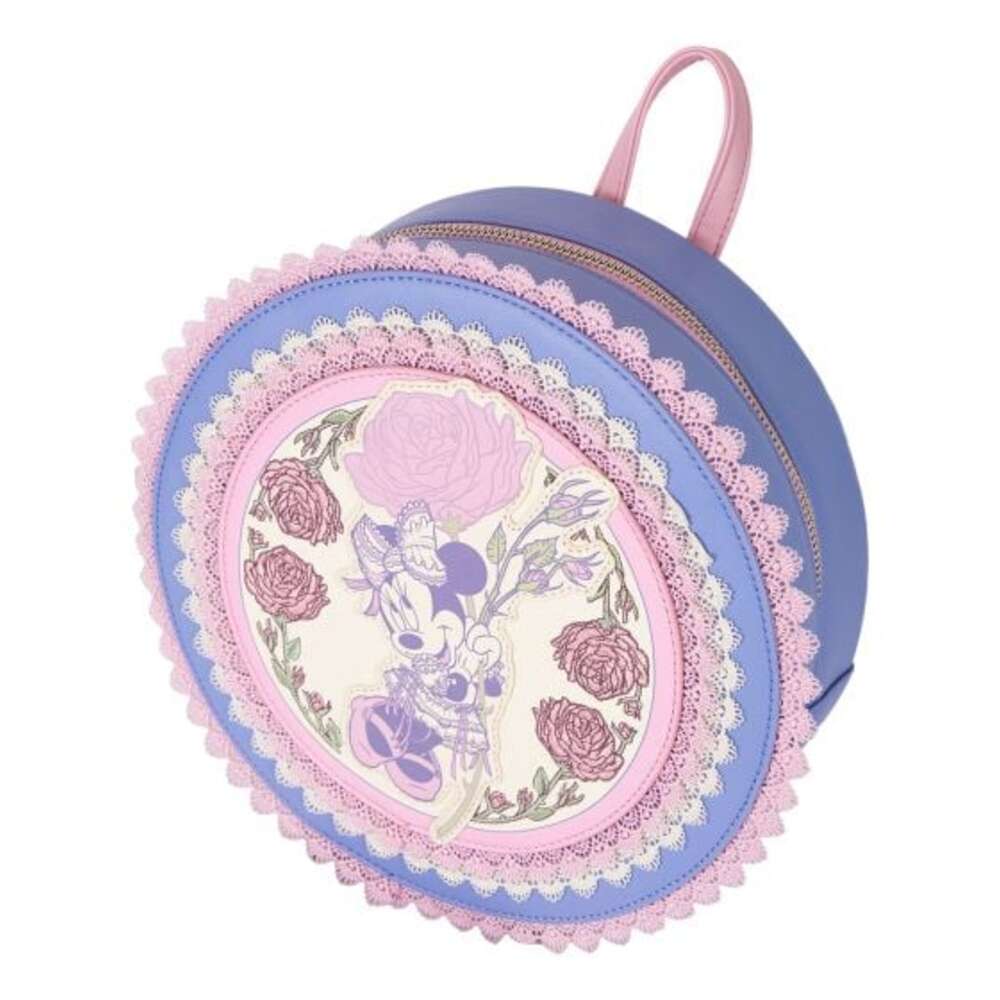 Fashion is in full bloom with this elegant Minnie Mouse crossbody bag. Designed in a unique circular shape, Minnie appears as an applique dressed to impress while holding a sweet bouquet of flowers. Embroidered roses surround her, framed by delicate pink and white lace-inspired details for a vintage flair. Perfectly blending charm and sophistication, this bag is a stunning accessory for Disney fans who love to add a floral touch to their style.