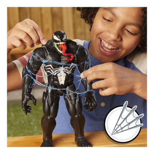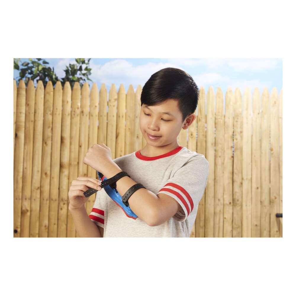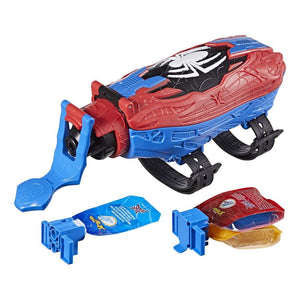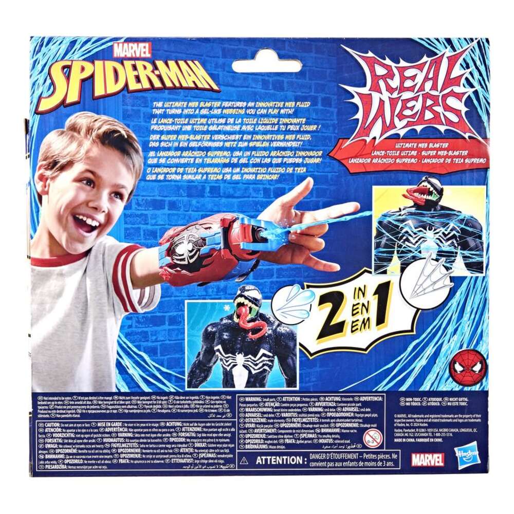 Ready to THWIP and blast realistic webs, just like Spider-Man? The Ultimate Web Blaster features an innovative web fluid that turns into a gel-like webbing you can play with! This blaster features the latest web tech with 3 ways to play. Kids ages 5 and up can strap blaster onto their wrist, show off their best Spider-Man THWIP pose, and push button to blast webs or water! Play with webs to imagine capturing Spider-Man's latest foe; drape around action figures or playsets (sold separately) to create your own webtastic world of Spider-Man! Blaster includes 1 Real Webs pouch (refills available, sold separately), and 1 refillable water pouch. The Ultimate Web blaster is a great Spider-Man gift for boys and girls, and can be a fun, action-packed addition to Spider-Man costumes, or paired with a Spider-Man mask! WARNING: Small parts. CAUTION: Do not aim at eyes or face. Product will stain. Adult supervision recommended. Not intended to be eaten. Not recommended for indoor use. Non-toxic. © 2024 MARVEL. © 2024 Hasbro. All rights reserved.