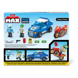 Build a MAX adventure with MAX! Build the ultimate Police chase adventure by constructing the MAX Police chase and help the MAX police chase down the robbers. Chase the robbers using the MAX Police car! There are 121+ pieces of quality MAX building bricks in this MAX adventure with easy to follow instructions. Build more for less with MAX.