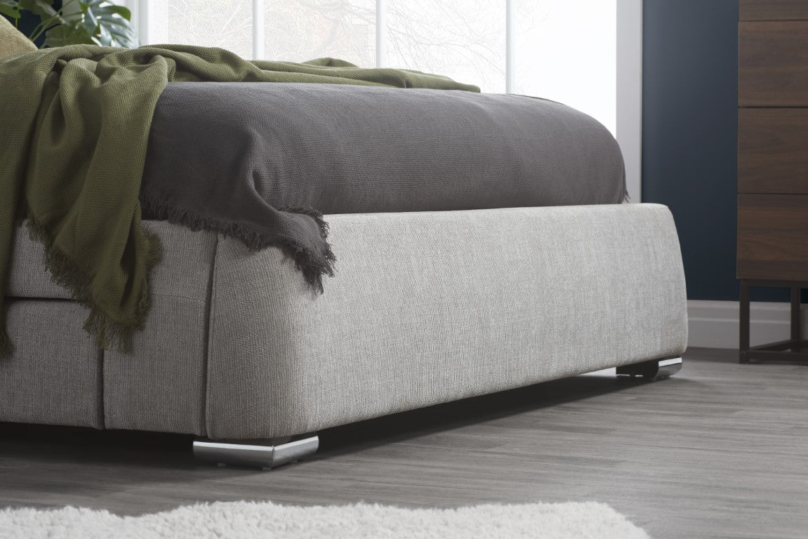 Upholstered in soft polyester, the Mayfair has complementary silver feet.