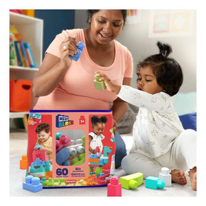 Your little one can build anything they imagine when they use this large set of 60 award-winning blocks and special shapes in classic colours to create tall towers, crazy castles, funny animals, or whatever else they can dream up Perfect for little hands, these big blocks fit together and come apart easily, helping your child to develop fine motor skills as they enjoy hours of creative, open-ended play. When playtime’s over, clean-up is easy with the handy storage bag.