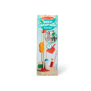 This six-piece play set gives kids all the housekeeping tools they need to keep it clean! Sized just for kids and built to last, the broom, mop, duster, dustpan, and hand brush are comfortable to use and easy to store--just hang them from the sturdy cords onto the included stand for neat, compact storage. (The dustpan can also snap onto any of the handles.) Natural-wood handles add durability and a classic look; bright pops of color keeps lots of fun in the mix!