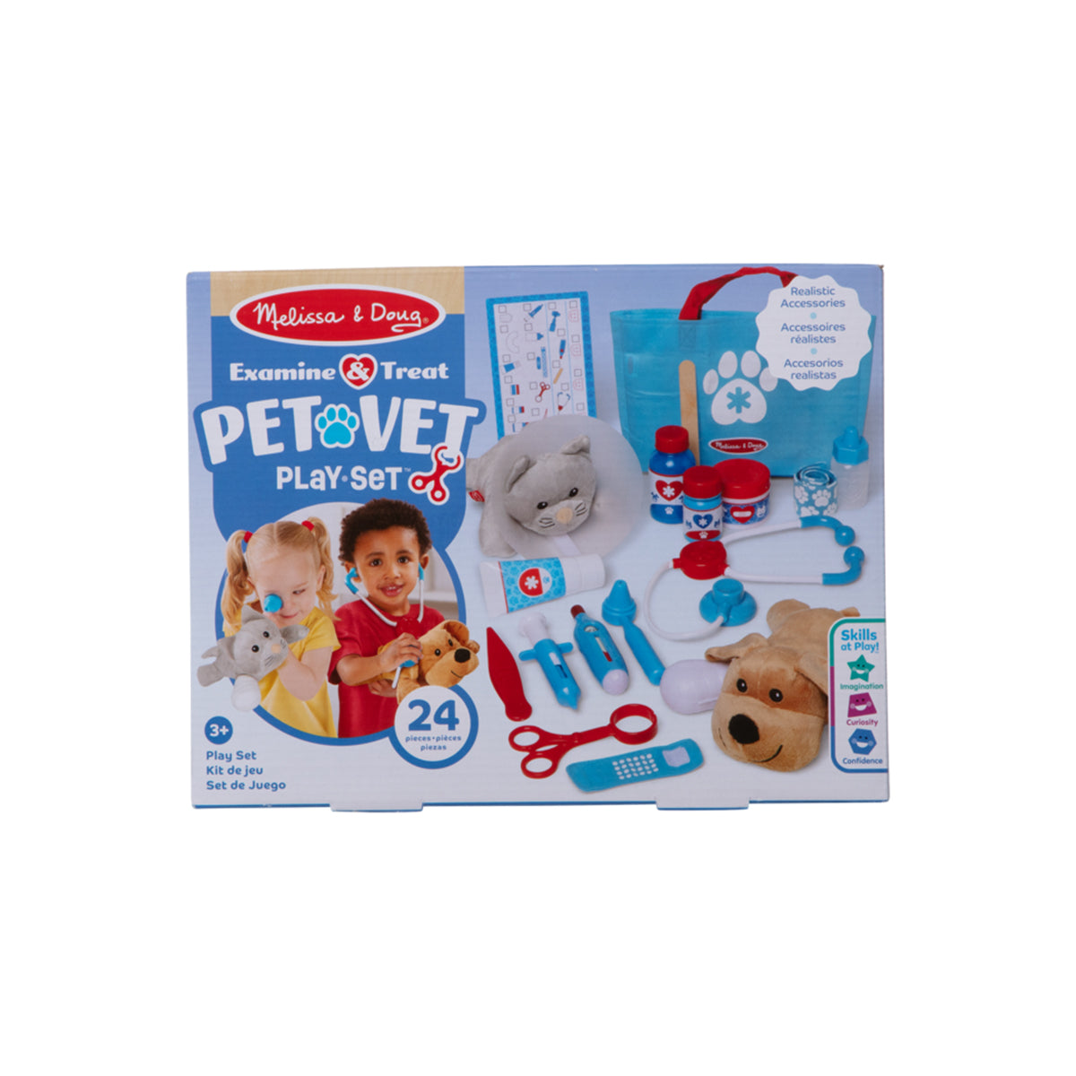 Give young animal lovers everything they need to examine and treat pretend pets! The 24-piece collection for aspiring veterinarians three and older comes with two adorable plush pets (a dog and a cat), and accessories galore, including a stethoscope, thermometer, syringe, ear scope, tweezers, and clamp.