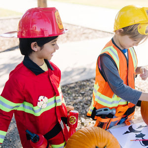 With authentic firefighter details, these role-play accessories encourage exciting pretend play for little heroes! The costume set helps promote narrative thinking and creative expression, along with independent and cooperative play. It makes a great gift for kids ages three to six for hands-on, screen-free play.