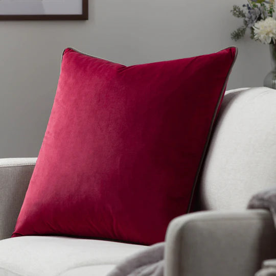 The Meridian Velvet Cushion offers a refined touch to any living space, combining understated elegance with expert craftsmanship. Made from luxurious plain velvet and enhanced with a contrasting piped trim, it brings a sophisticated pop of texture and detail.