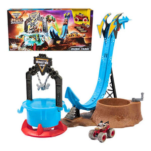 Splash into action-packed excitement with this Monster Jam Mud Blasters Monster Trucks Playset Dunk Tank! his playset includes a ramp and a dunk tank, where children can launch the exclusive 1:64 scale Monster Mutt Dalmatian truck into a transformative adventure. Aim your Monster Jam trucks for the pool filled with warm water and watch as the truck sheds its muddy exterior, revealing a stunning, clean design. Compatible with all 1:64 Mud Blasters Monster Jam trucks (each sold separately). The excitement doesn't end there - dip it into cold water to watch the mud-splattered appearance return offering endless replay fun. This magical colour change mesmerises and enhances fine motor skills and encourages imaginative play.