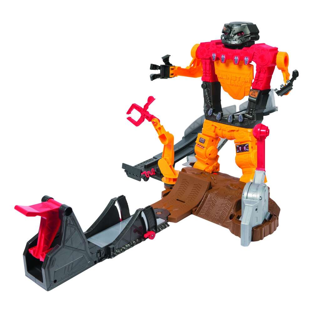 Smash, bash and keep going with the Monster Jam SmashBot Playset with an exclusive Smash & Bash monster truck- fantastic for kids toy gifts for boys and girls ages 3 and up. This playset includes an adjustable launcher, 38,1 cm SmashBot robot where children can launch the exclusive 1:64 scale Smash & Bash JCB Digatron truck. Crash your monster truck toys and repair them back in a couple click to keep the Monster Jam action going. Aim your truck for the robot as you try and take it down. Defeat SmashBot and repair it with a couple cranks for repeat play. With so many other Monster Jam trucks to collect, add Grave Digger, Megalodon, El Toro Loco and more (each sold separately) to your collection and race them all! Monster Jam toys like remote control cars and more to bring the excitement home. Launch into the action with the Monster Jam SmashBot Playset.