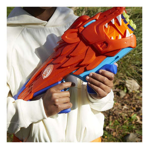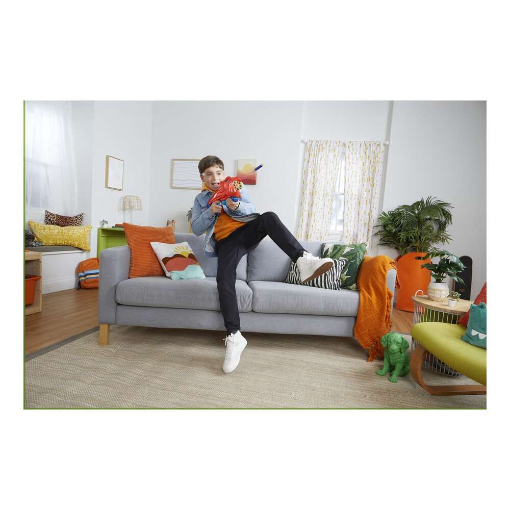Nerf Wild blasters are designed with special features that make them easy to play with, so young kids can enjoy playing with these wild-looking blasters all by themselves. They're easy to hold, sized to fit comfortably in small hands, and lightweight for easy carrying in backyard games. The front-loading design makes it easy to insert darts, and the handles have the lowest pull force of any Nerf dart blasters, for easy blasting. All these features let kids experience the thrill of blasting all by themselves. They're perfect for boys and girls who are blasting into Nerf dart games for the first time. The Nerf Lionfury blaster features an awesome lion design that captures the look of this ferocious feline with vibrant colors and exciting details! This Nerf blaster lion toy includes 16 Nerf Elite 2.0 flexible foam darts. Eyewear recommended (not included). Blasters each sold separately, subject to availability.