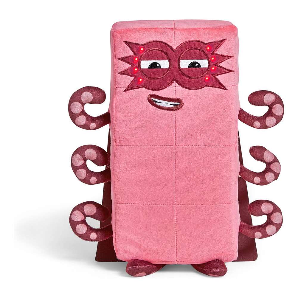Learning Resources® Sing-Along Superhero Octoblock Count, sing and save the day with Octoblock, the Numberblocks™ superhero! Watch Octoblock's mask light up to the rhythm of 12 songs and sounds, including the Numberblocks theme song. Made from high-quality materials, this fun-loving character has all the familiar features children know and love from the episodes, and we've also given Octoblock a special, heroic cape! This sing-along feature plush toy is perfectly sized for little hands to hold, cuddle and take on imaginative play adventures. Octoblock is approx. 35cm tall. Packaging is multilingual. Requires 3 AAA batteries included.