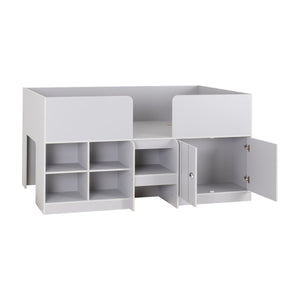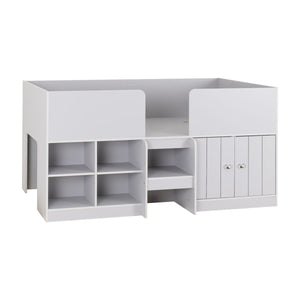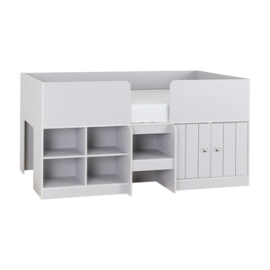 The perfect addition to any modern bedroom - the Orlando Low Sleeper Bed. With its sleek and contemporary design, this bed not only looks great but also provides a comfortable sleeping experience! Perfect for growing families, this bed offers extra space underneath for storage, as well as open shelving spaces. Solid slats provide a high level of support and comfort whilst you sleep. Why not customise the Orland bed with plump cushions and a soft throw to make bed time even more stylish!