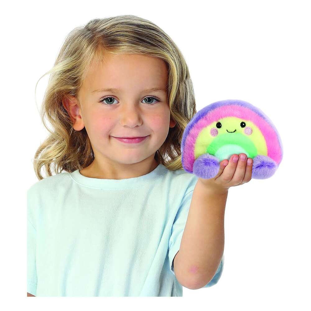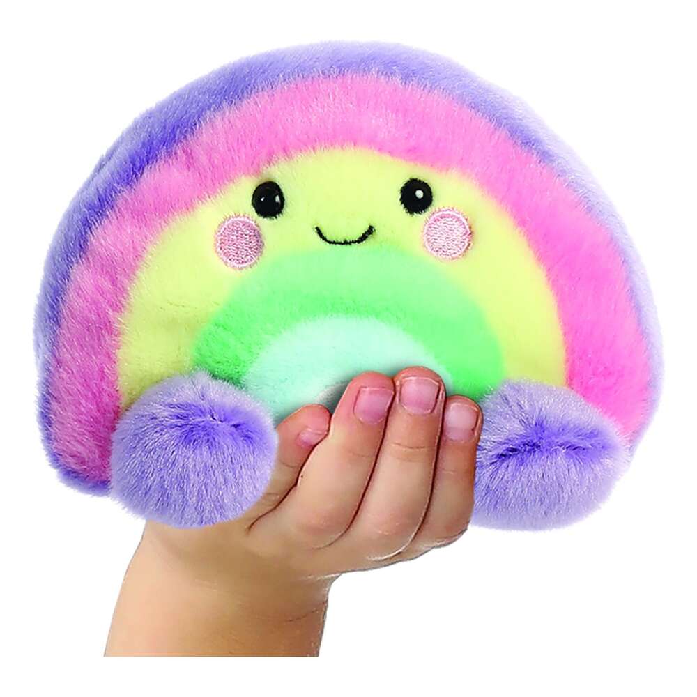 This cute Palm Pals Vivi Rainbow Soft Toy fits into the palm of your hand, full of beans which makes it super soft and cuddly. Vivi Rainbow's body is a soft purple, pink, yellow, green and blue rainbow plush material. This is a super cute playful smiling Rainbow soft toy. Palm Pals make great gifts for any occasion, whether it is for a birthday or as a general gift, everyone will fall in love with this adorable Rainbow soft toy. This is a hugely collectible range. Palm Pals Vivi Rainbow Soft Toy measures 13cm. Palm Pals Vivi Rainbow Soft Toy is part of Aurora's Eco-Friendly initiative and comes with inner fibre fill and beans made from recycled plastic materials. Our hang tags are recyclable with our cloth labels being made from recycled materials.
