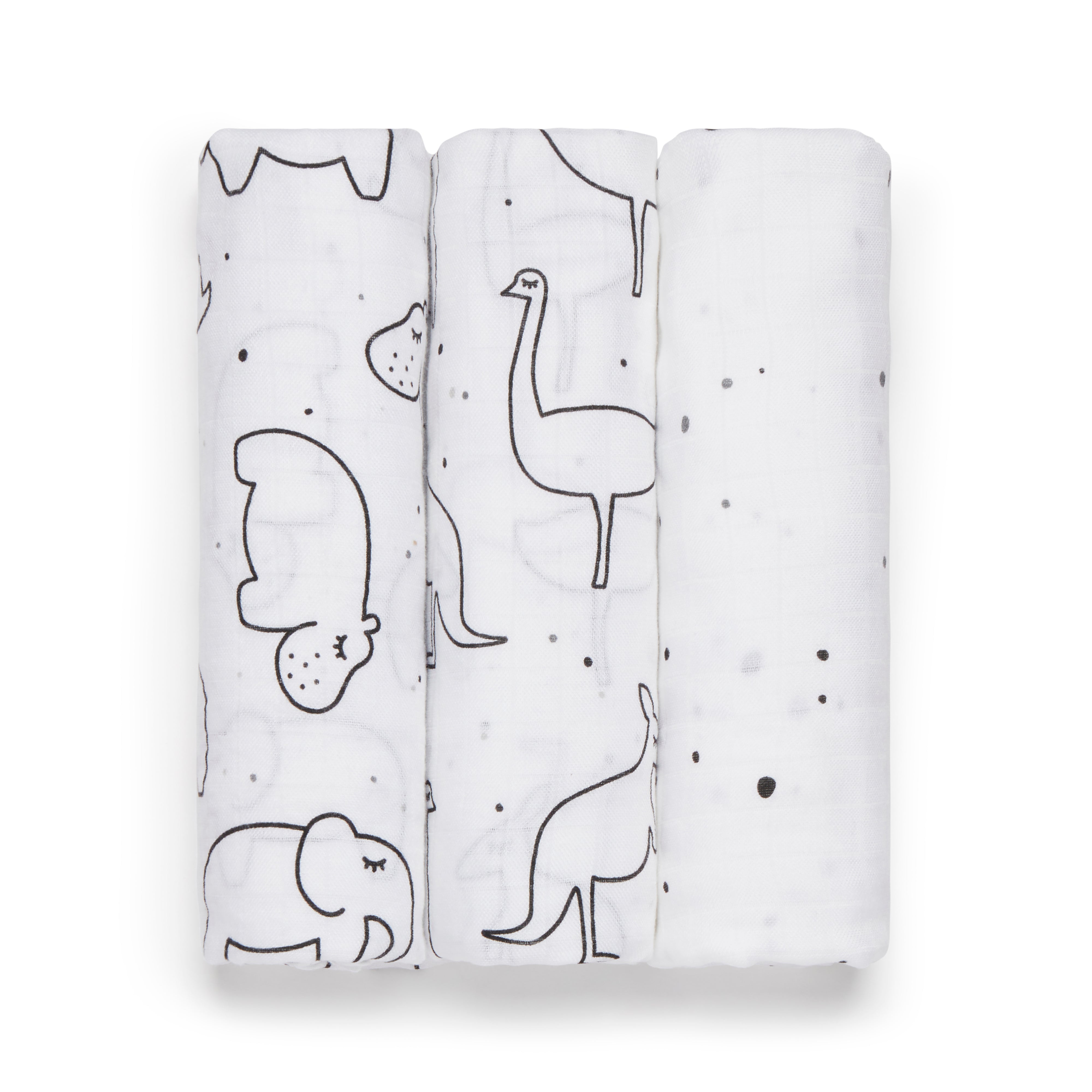 This trio of Baby Bamboo Muslin Squares from Panda is a must-have for new parents. Made with 100% bamboo, they are incredibly absorbent, super soft on babies’ skin and naturally antibacterial for added freshness. Hypoallergenic, durable and breathable, these multipurpose bamboo muslins only get softer with every wash. Available in three different design collections, they measure 70 x 70cm.