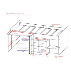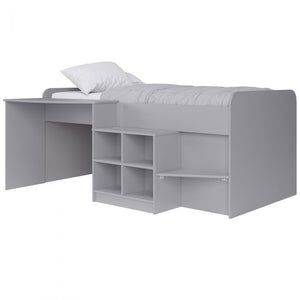 The Pilot cabin bed is like a Batman utility belt, it has everything all in one place. A desk, bookcase and sleeping area all designed into a great space saving idea. It s low to the ground and ideal for any age group. Finished in a durable wipe clean material with thicker edges for sustained durability.