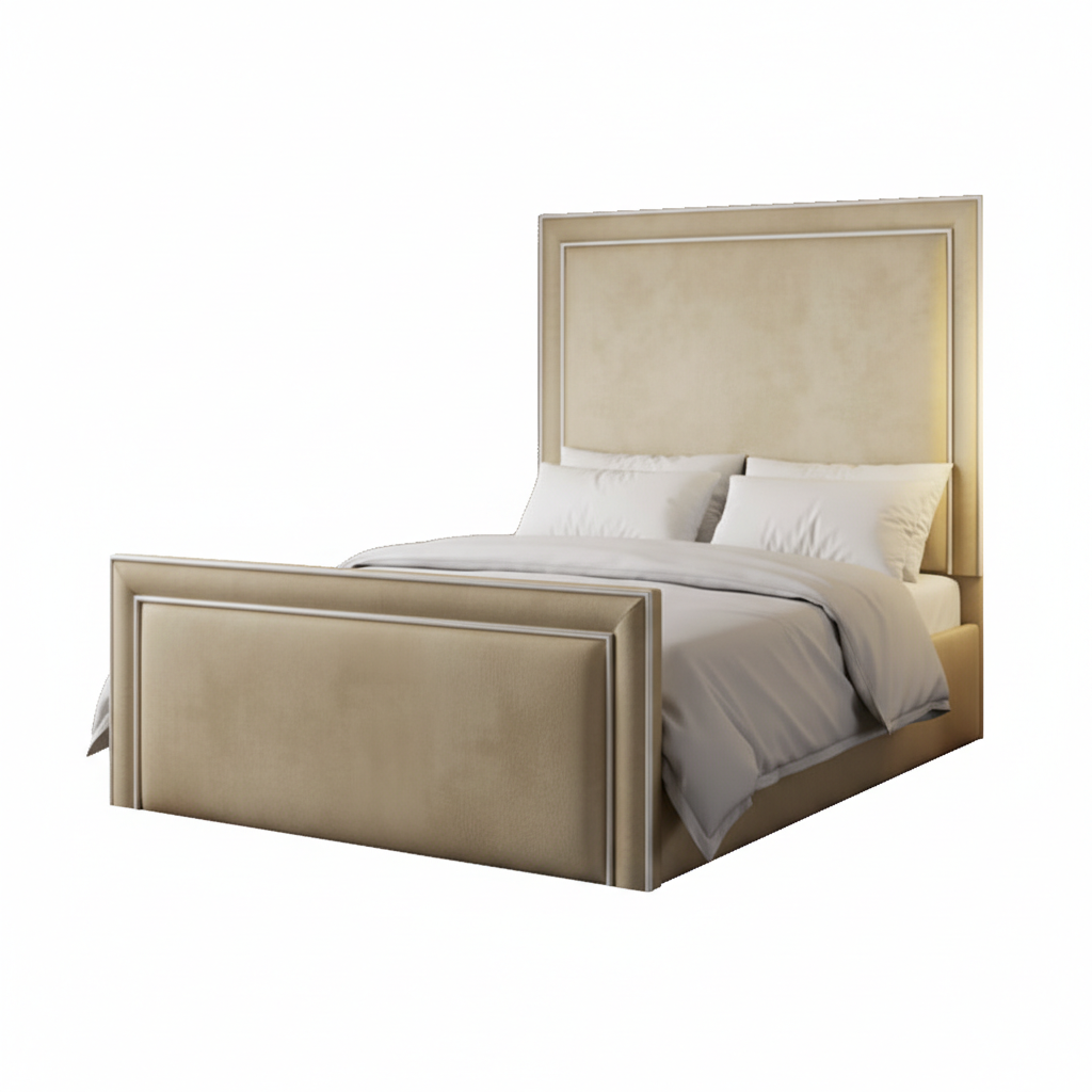 The Piping Bed Frame is designed with simplistic yet beautiful features and is ideal for all homes. It offers a stunning design, has a simple pipe design on the headboard and footboard and will be a great addition to your home. The bed can be made in a range of different fabrics and colours to give you the perfect option suitable to you. This bed is designed and crafted with the highest quality materials, featuring a strong base to give it stability. The bed is easy to assemble, and the sturdy base ensures it’s ability to last for many years.