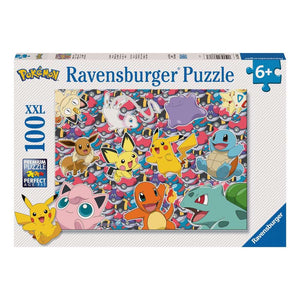 Join Pikachu,, Pichu, Bulbasaur, Jigglypuff, Eevee, Mew, Squirtle, Ditto, Togepi, Meowth, Charmander and Pokeballs as you complete this fin and exciting challenge style 100 piece extra large jigsaw puzzle.