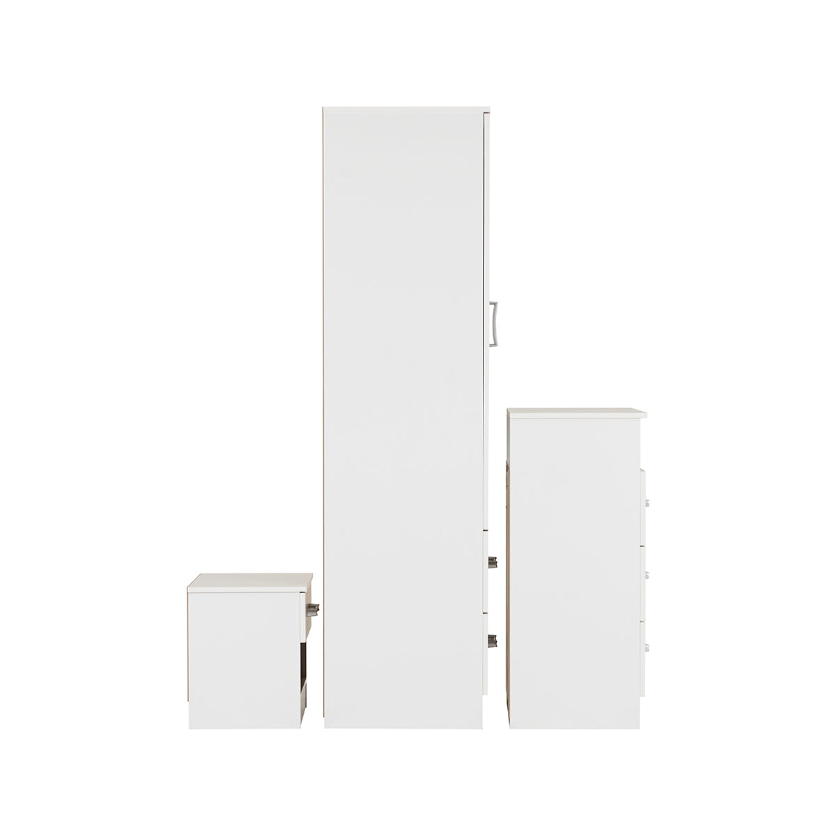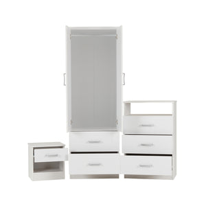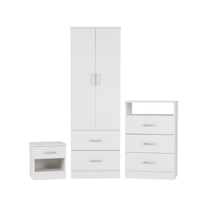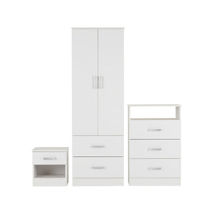 Polar Bedroom Set is a budget bedroom set which consists of a 2 door 2 drawer wardrobe, a 3 drawer chest and a 1 drawer bedside cabinet and is available in a choice of white or beech.