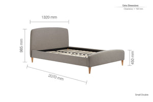 Upholstered in polyester the Quebec bed frame is available in a grey finish.