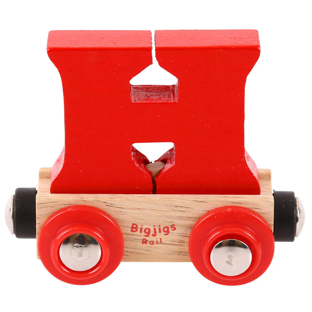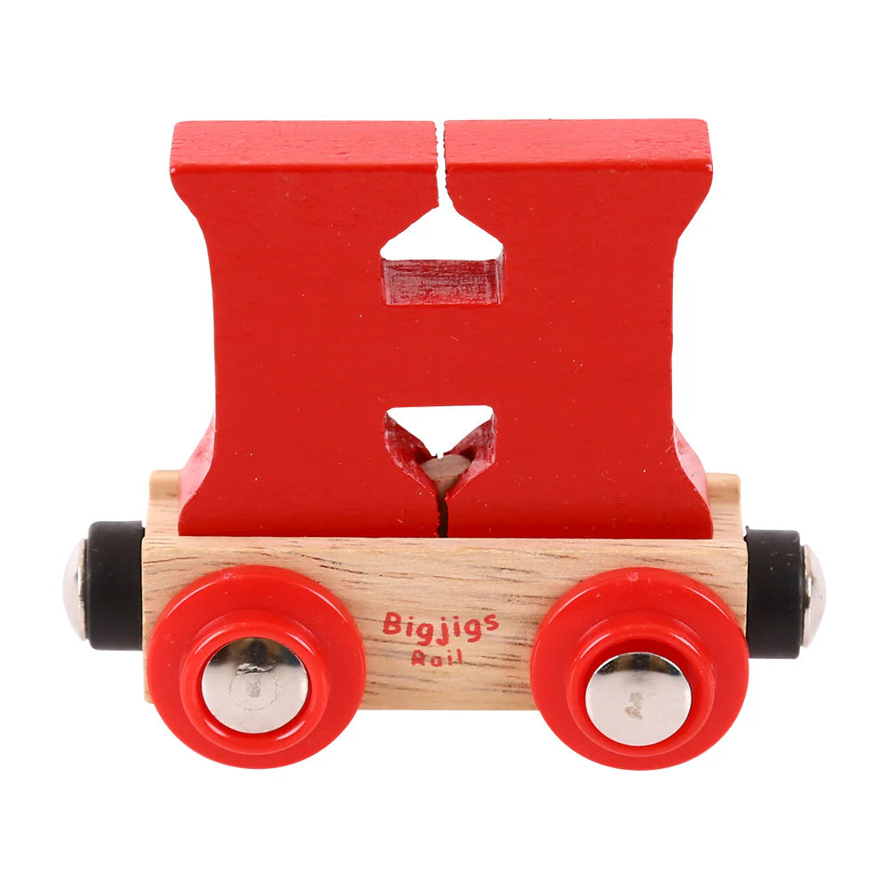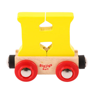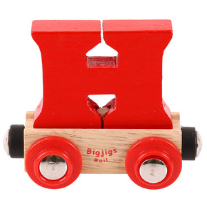 Bigjigs Rail Name carriages are loaded with a brightly coloured wooden letter or number. Each letter or number is removable and can be interchanged with other wagons and carriages in your wooden train set.