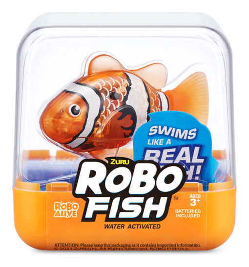 Robo Fish by ZURU are the most real-life robotic pets ever! Drop these fun fish into water to watch them swim in up to 5 different directions and dive up to 6ft! These super swimmers have water activated technology that brings them to life like magic! These realistic Robo Fish are the ultimate prank toy.