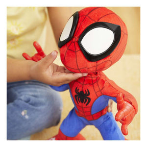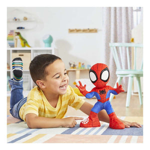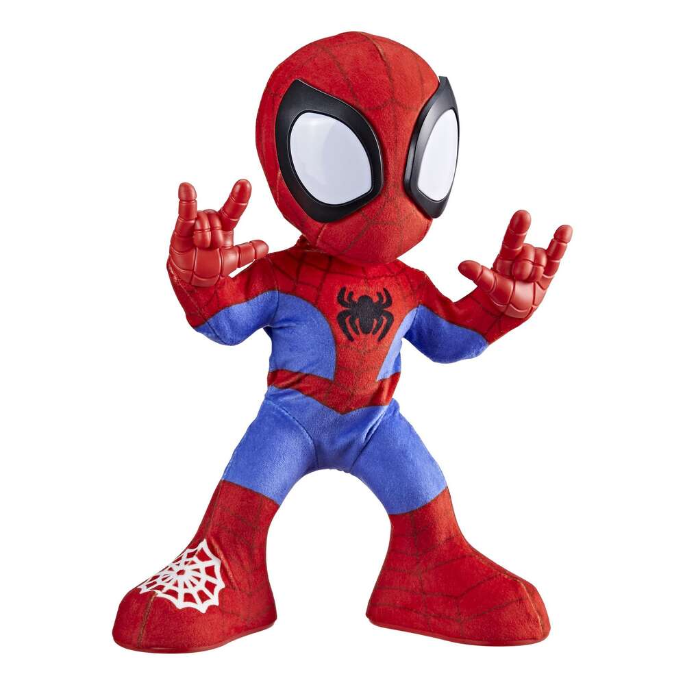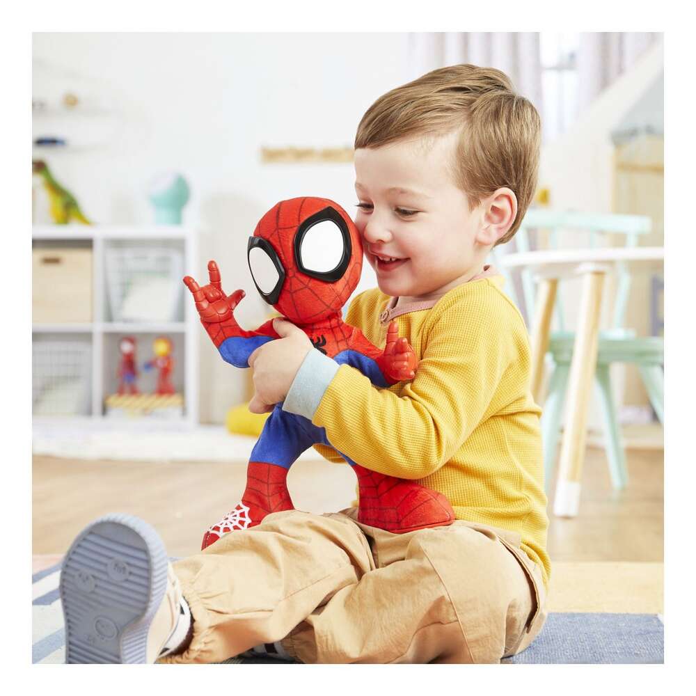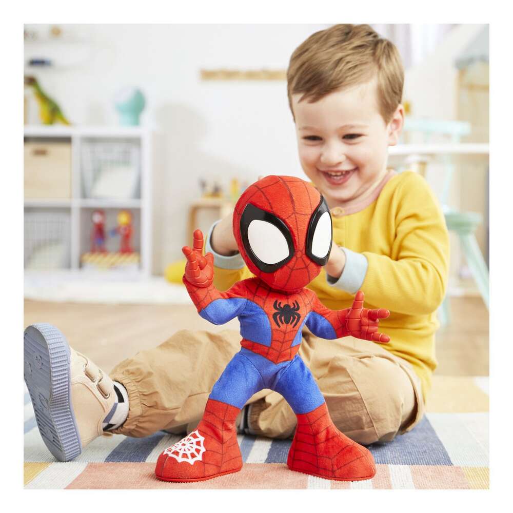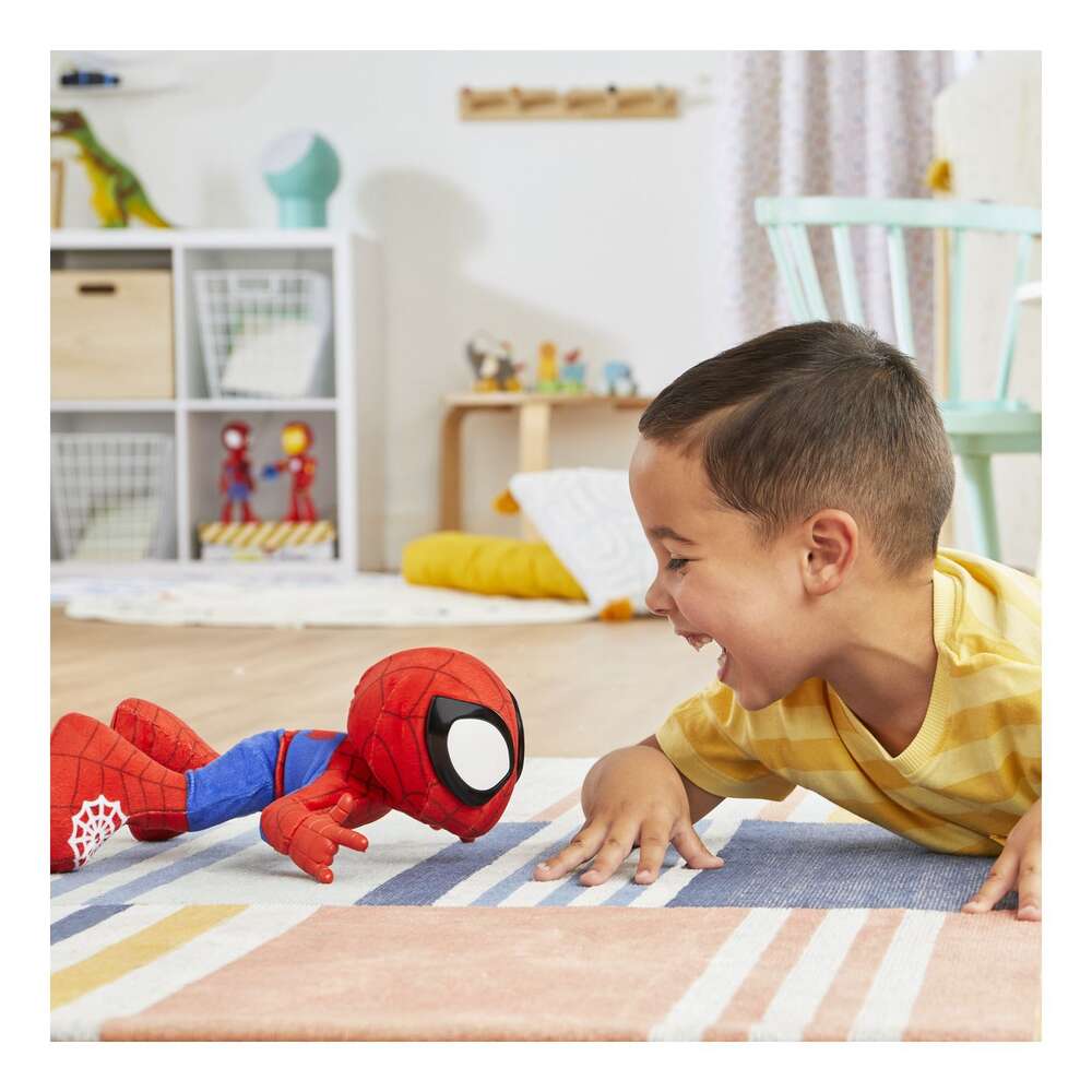 Get ready for dancing, crawling, and webtastic sound effects with the Marvel Spidey and His Amazing Friends Dance 'N Crawl Spidey! Preschool boys and girls 3 and up can activate dance mode by pushing the web on Spidey's foot. Press the icon on Spidey's chest and hear 5 awesome sound effects, plus 2 instrumental songs for dancing along! Ready for pretend wall-crawling action? Watch Spidey crawl by tilting his head up, rotating his wrists, and placing him on his belly. Phew, what an adventure! Settle down for a story or a nap with Spidey. Plush Spidey toy is covered in a soft fabric that's perfect for snuggling when playtime is done. This Spidey and His Amazing Friends toy makes a great Marvel gift for boys and girls and helps to encourage movement while imagining awesome adventures with Spidey. Copyright MARVEL. All trademarks and registered trademarks are the property of their respective owners. HASBRO and all related trademarks and logos are trademarks of Hasbro, Inc. Ages 3 and up. WARNING: Small parts may be generated. Battery info: 1.5V AA x4 included.