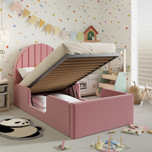 Introducing the Serene Curved Kids Bed, built with superior quality materials and bolstered with extra timber for enhanced longevity. With a variety of fabric and shade options, this bed has been expertly constructed by our adept artisans, to provide a lifetime of use. Indulge in the sophistication of the luxury curved finish and lined design of the headboard.