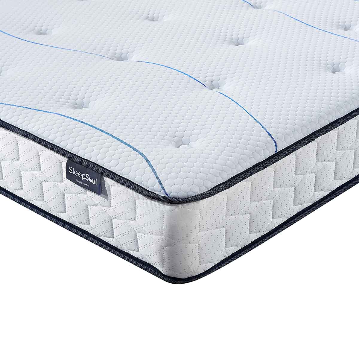 Luxurious comfort quilting and a soft foam layer sit on top of a traditional open-coil spring system. Combined, these features create the perfect balance of comfort and support, allowing you to sleep peacefully in any position. So whether you're a toss-and-turner, a duvet hogger or a belly flopper, you're guaranteed a comfortable night's sleep with SleepSoul.