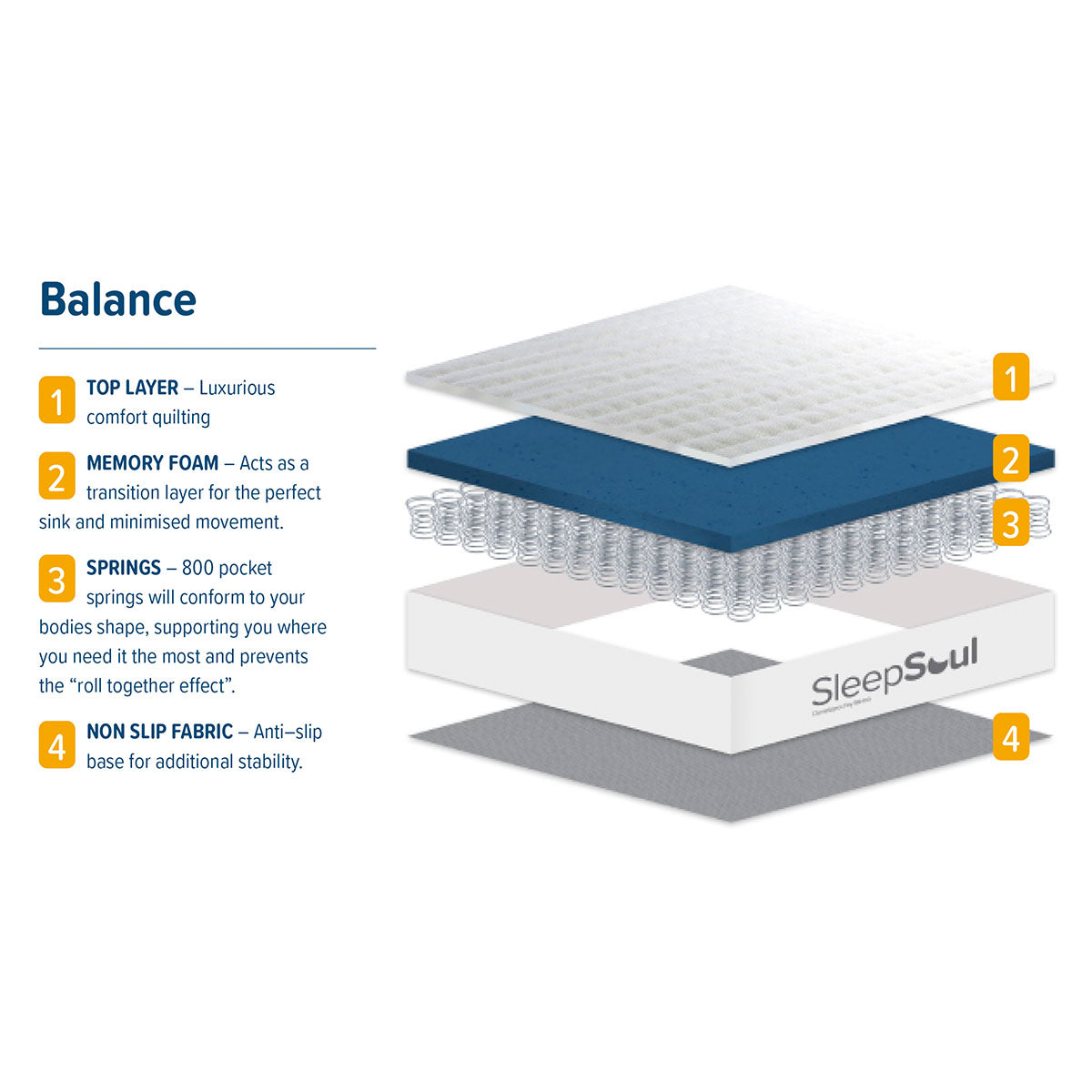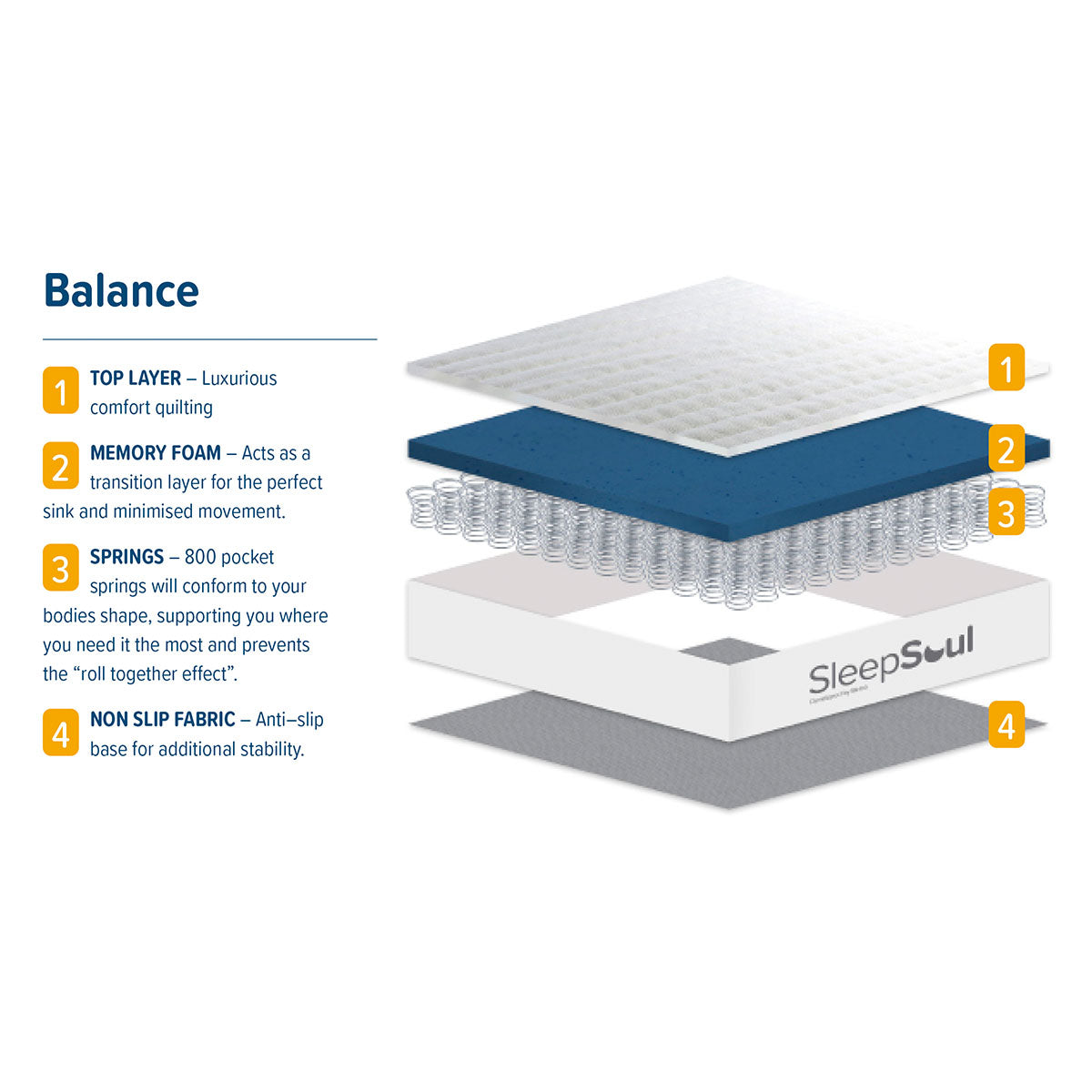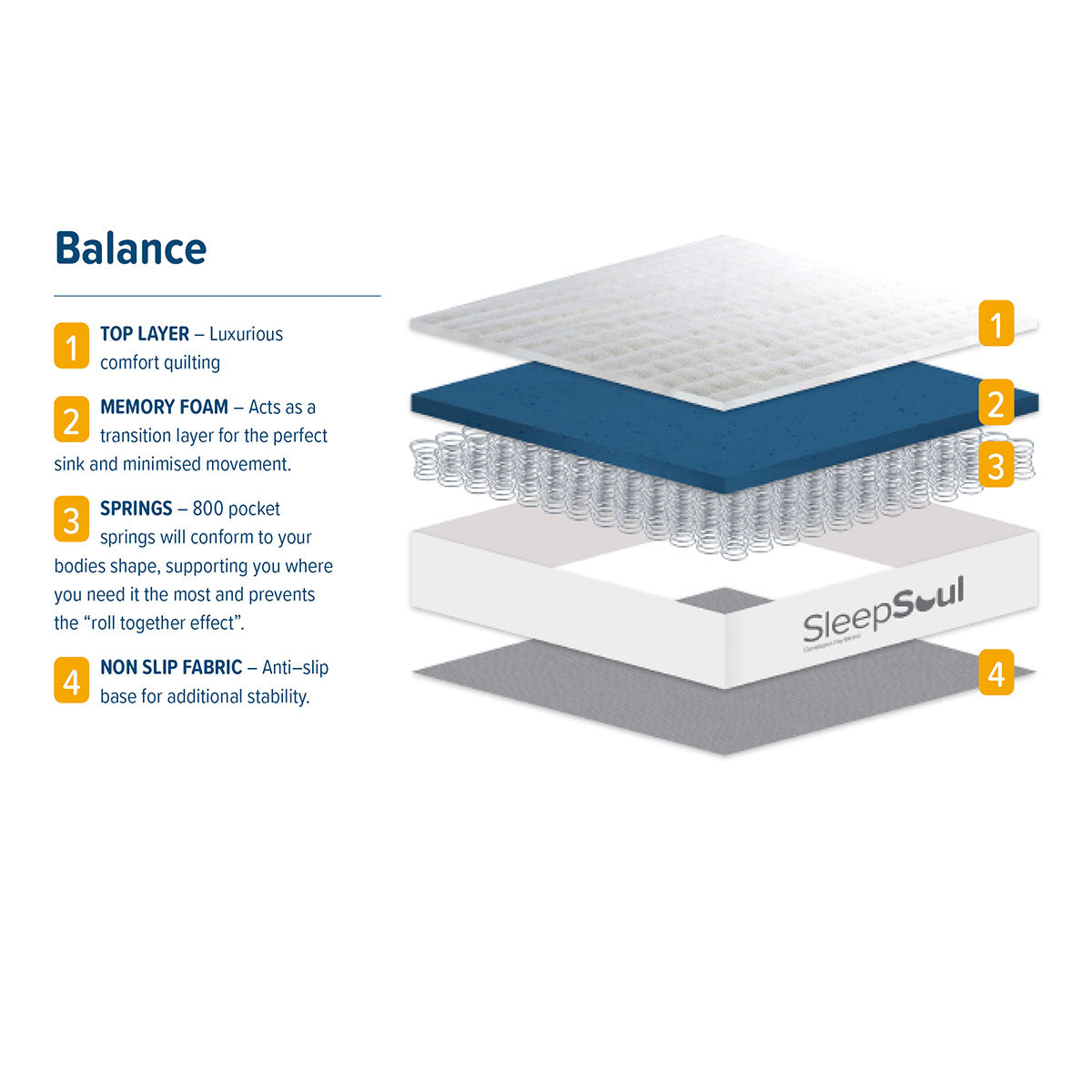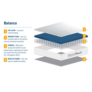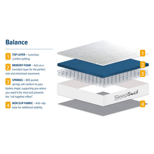 The SleepSoul Balance Mattress combines 800 edge-to-edge pocket springs with 2cm of memory foam for full-body support and soothing comfort.