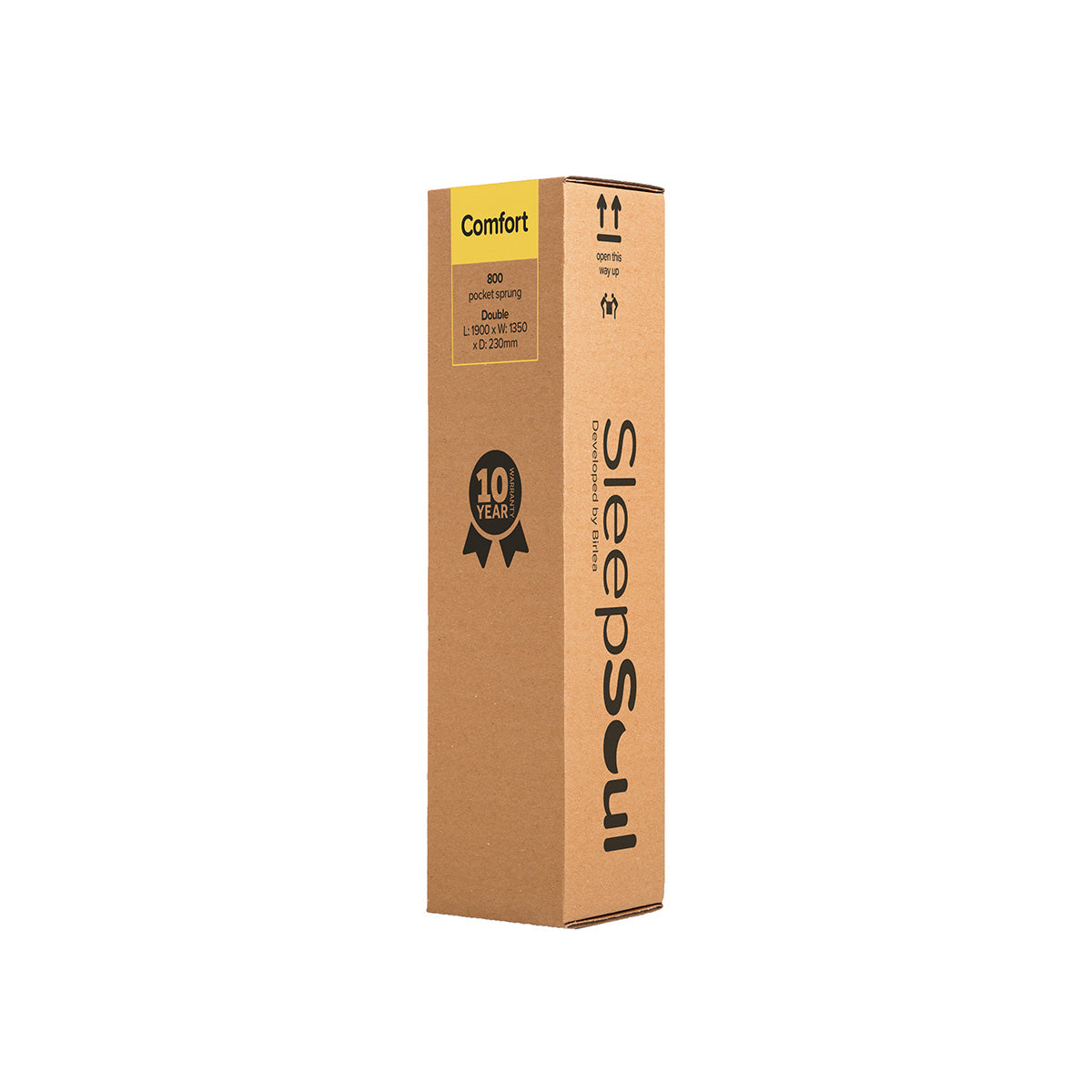 Vacuum-packed for easy setup and backed by a 10-year warranty — Comfort delivers years of peaceful, quality sleep.
