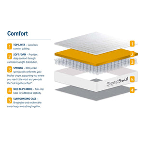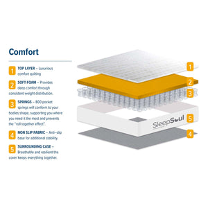 The SleepSoul Comfort Mattress blends plush foam layers with 800 pocket springs for full-body support and soothing pressure relief.