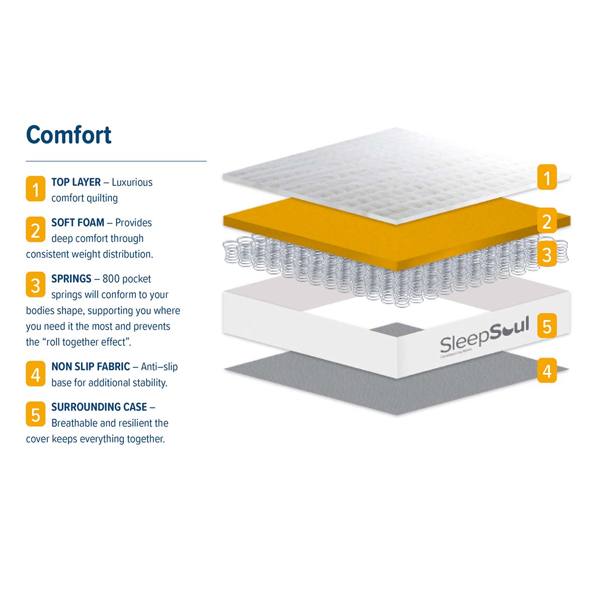 The SleepSoul Comfort mattress is the answer to achy joints, restless nights and grumpy mornings. Sink into the foam to experience true comfort, all night, every night.