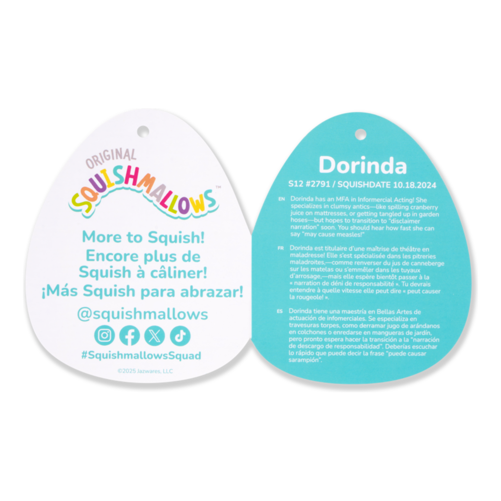Squishmallows - 12" Dorinda the Lavender Pangolin – Meet Dorinda, the adorable lavender pangolin with a love for peaceful naps and cozy hugs! Her soft scales shimmer in shades of purple and lilac, making her as soothing as she is sweet. With her gentle smile and ultra-soft plush, Dorinda is perfect for snuggling, collecting, or gifting to a Squishmallows fan.