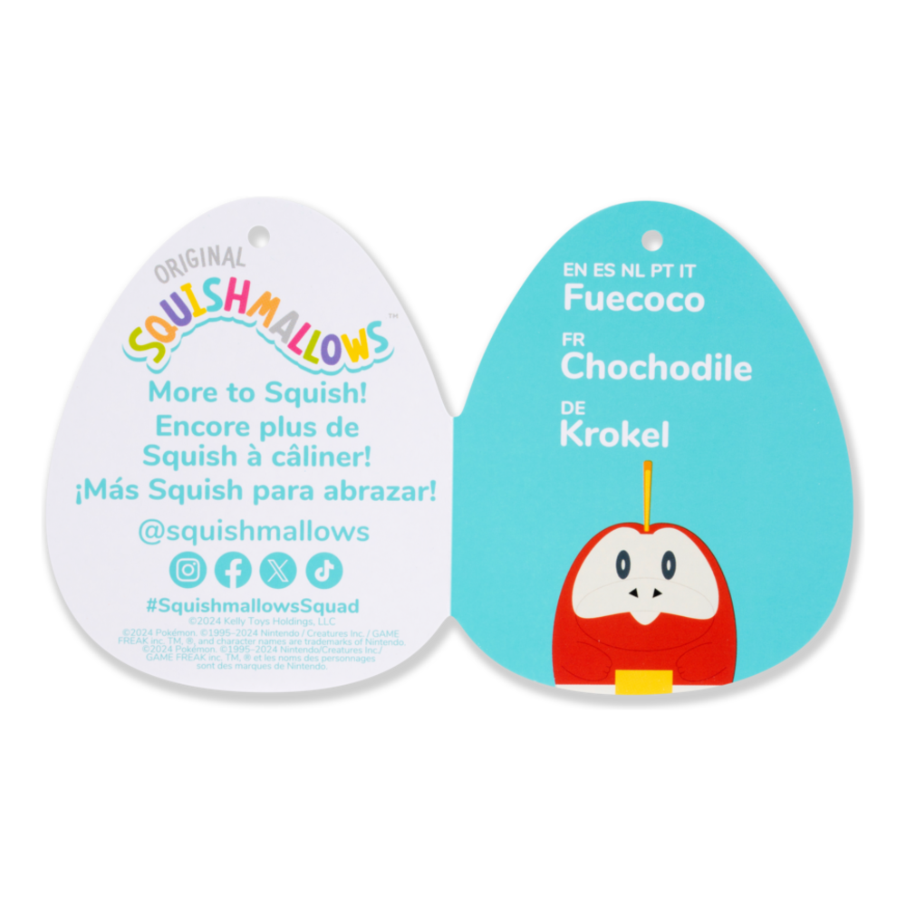 Get ready to snuggle with the Squishmallows Pokémon Fuecoco plush! This ultra-collectible, ultra-squeezable Fuecoco plush is made with soft, high-quality materials and is perfect to snuggle with during long car rides and sleepovers. This authentic Squishmallows plush is easy to clean: hand wash, then air dry. Catch them all by Squadding up with other Pokémon Squishmallows! Only by Original Squishmallows. Join the Squad! Includes: (1) Squishmallows Pokémon Fuecoco 14-Inch Plush