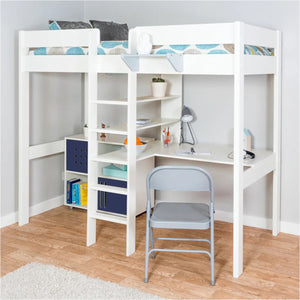 Elevate your child's room with the Stompa Duo 2 High Sleeper, a versatile and space-saving solution designed for modern living. This high sleeper combines a comfortable sleeping area with a functional desk and a cube unit with doors, providing a multifunctional hub for sleep, study, and storage.