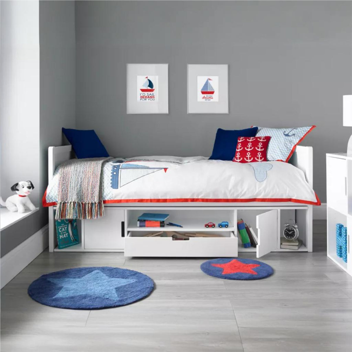 Stompa UNOS Storage Cabin Bed White Headboard White Doors