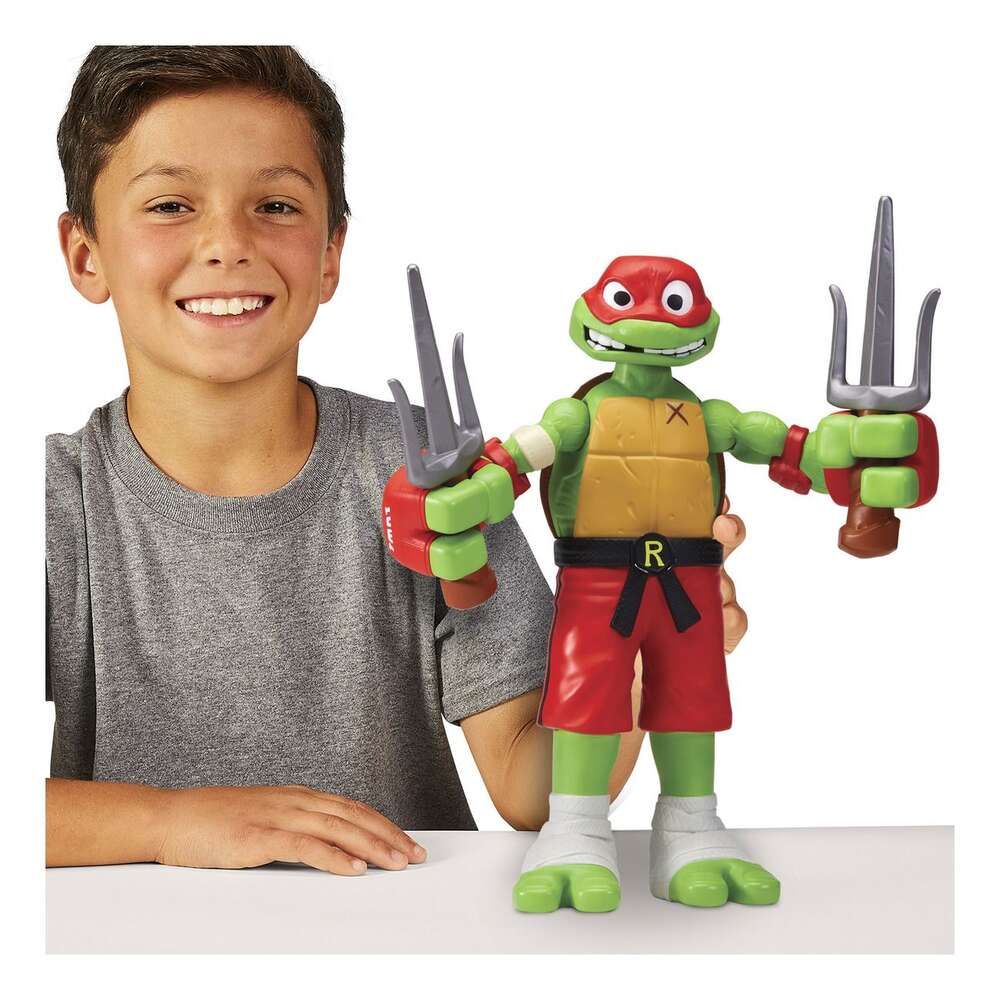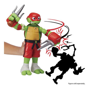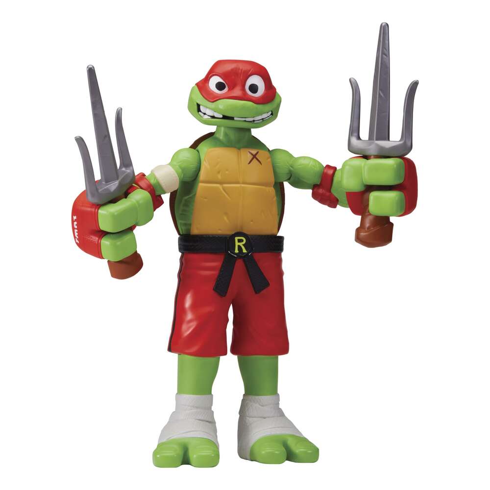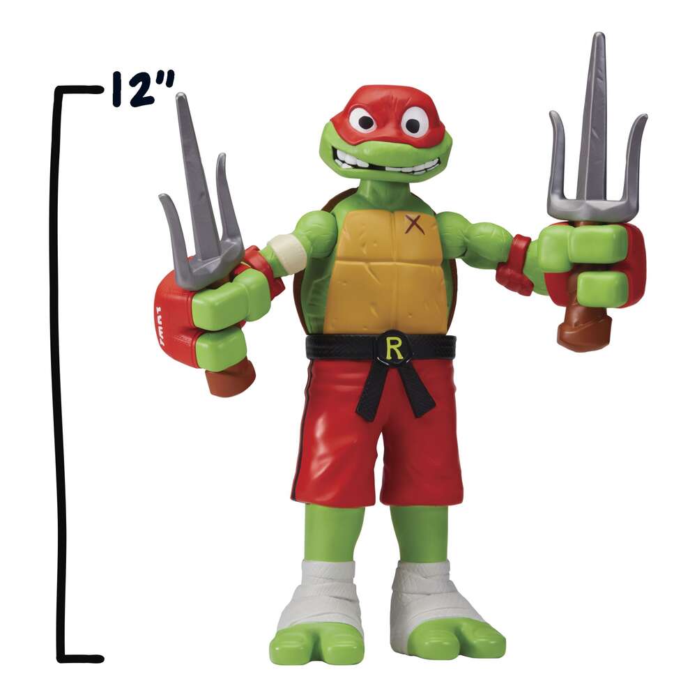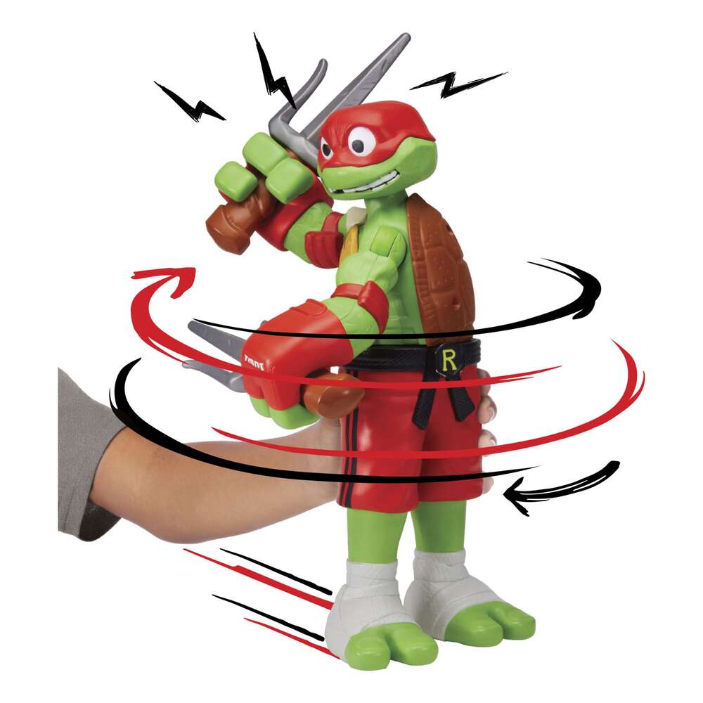 When a fearsome new foe arrives in New York City, it's up to the Turtles to defend the city's streets (and the sewers). To begin the battle, roll Raph on a hard surface and watch as he unleashes powerful punching action! Robots don't stand a chance against massive mutant punches!