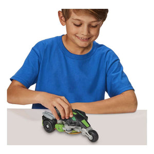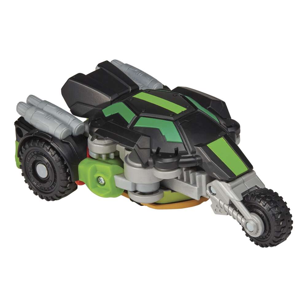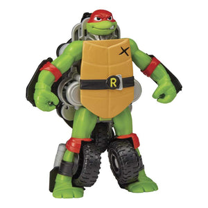 The Turtles have places to be and pizzas to eat! Help them race to the rescue (and some restaurants) with another mutation! To transform Raphael into an awesome three-wheeled vehicle, simply slide the seat on his back. Once he's found the fight, slide the seat on his back again to return Leo to his fierce Ninja Turtle form!
