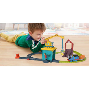 Preschoolers can relive memorable moments with their favorite characters from the Thomas & Friends show with the Fix 'em Up Friends track set from Fisher Price. Along with a motorized Thomas engine, this train set features new characters, Carly the Crane and her best friend, Sandy the Rail Speeder! Carly the Crane uses her hook to lift and load the small engine into Thomas' cargo car for a ride. After Thomas zooms around the full loop of track, he drops Sandy the Rail Speeder off at the slide to take her back down to Carly the Crane. This track set is compatible with other Thomas & Friends track, except wood. (Additional track sets sold separately).