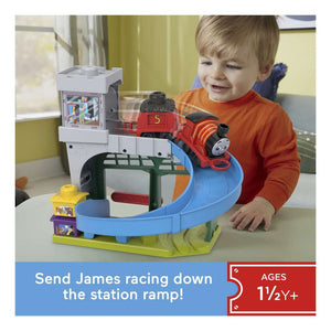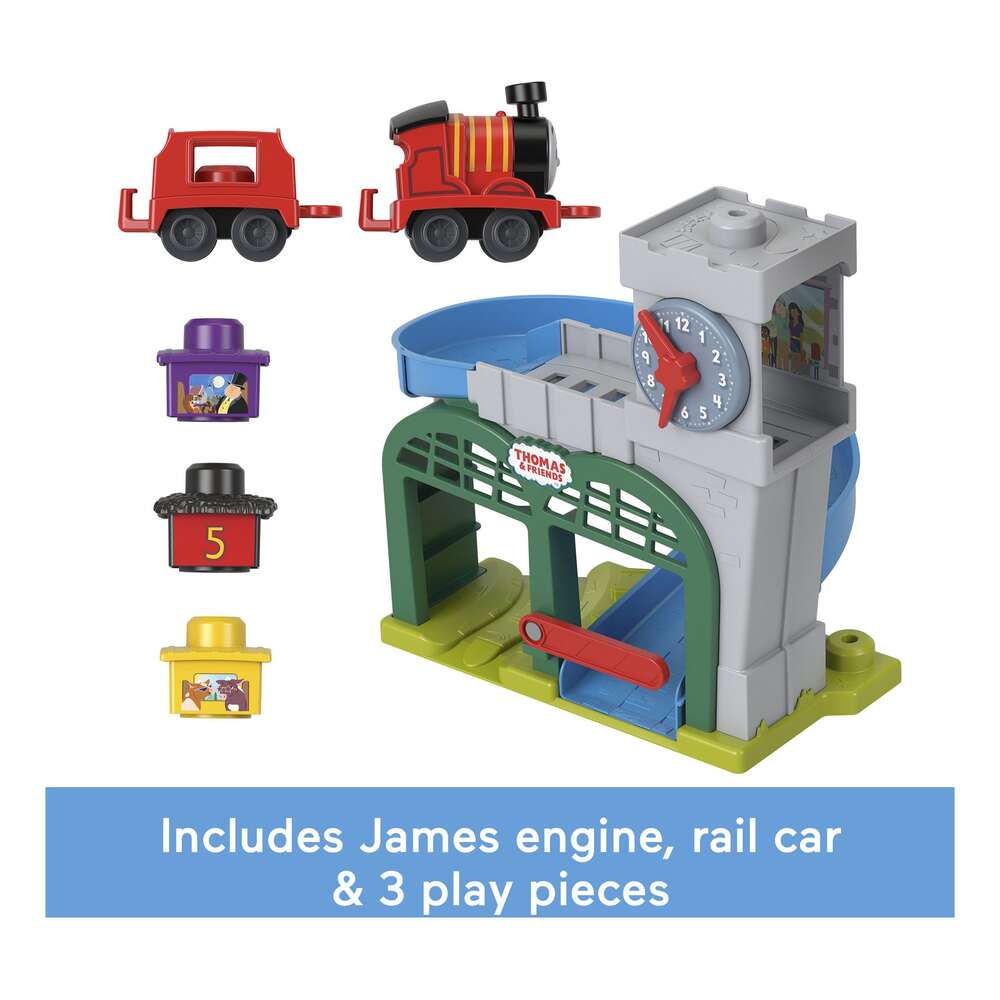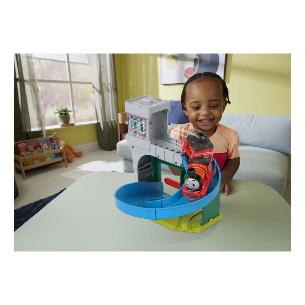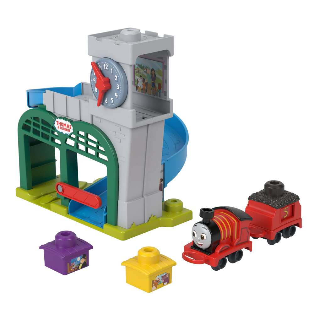Toddlers can bring to life all the exciting hustle & bustle action of Sodor’s train station with this Thomas & Friends My First Knapford Station playset from Fisher-Price. Styled like the iconic location from Thomas & Friends: All Engines Go, this playset features a fun winding ramp for engines to zoom down, a drive-thru tunnel, and 3 pieces of cargo for kids to load and unload from James’ rail car. For added hands-on play, toddlers can spin the hands on the clock and lift & lower the ramp gate to keep James rolling along. Look for additional Thomas & Friends My First engines to bring to this playset for more toddler-friendly train play! (Additional engines sold separately and subject to availability.) Colors and decorations may vary.