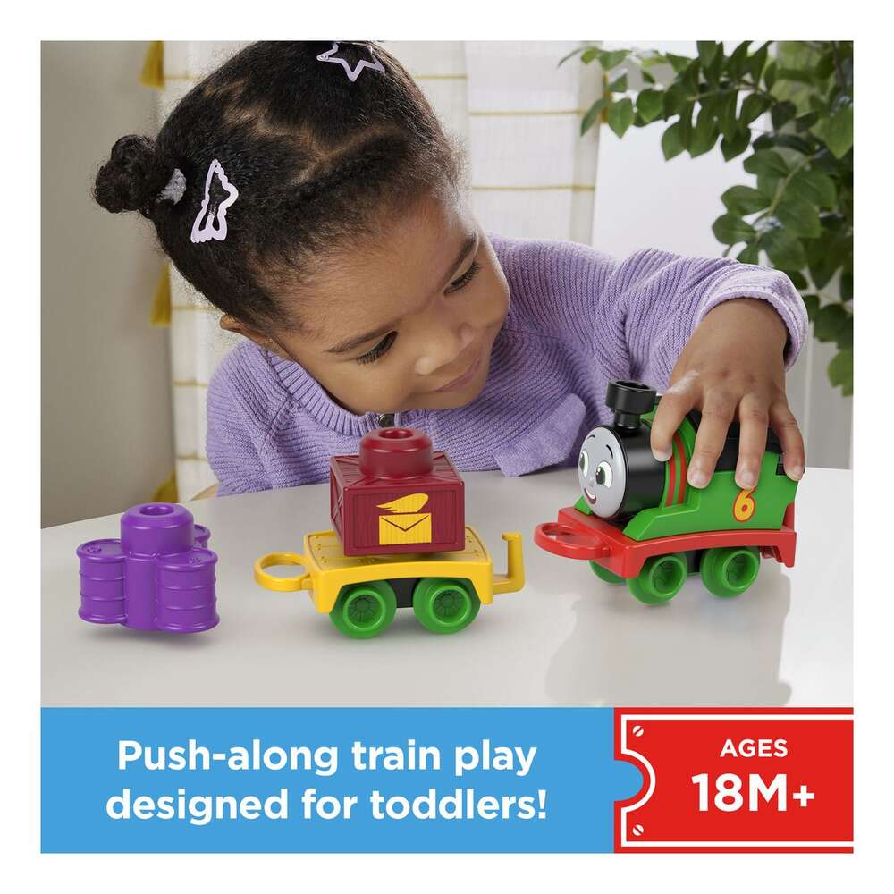 Toddlers can get in on the Sodor Railway action with Thomas & Friends My First push-along toy train engines from Fisher-Price. Designed just right for small hands to grasp and move, these large, chunky engines are styled like characters from the Thomas & Friends: All Engines Go series, so toddlers can race into adventures with their favourite friends. Each toy train includes attachable cargo cars and cargo pieces for fun stacking, loading and unloading play. Kids can collect them all! (Each sold separately and subject to availability.)