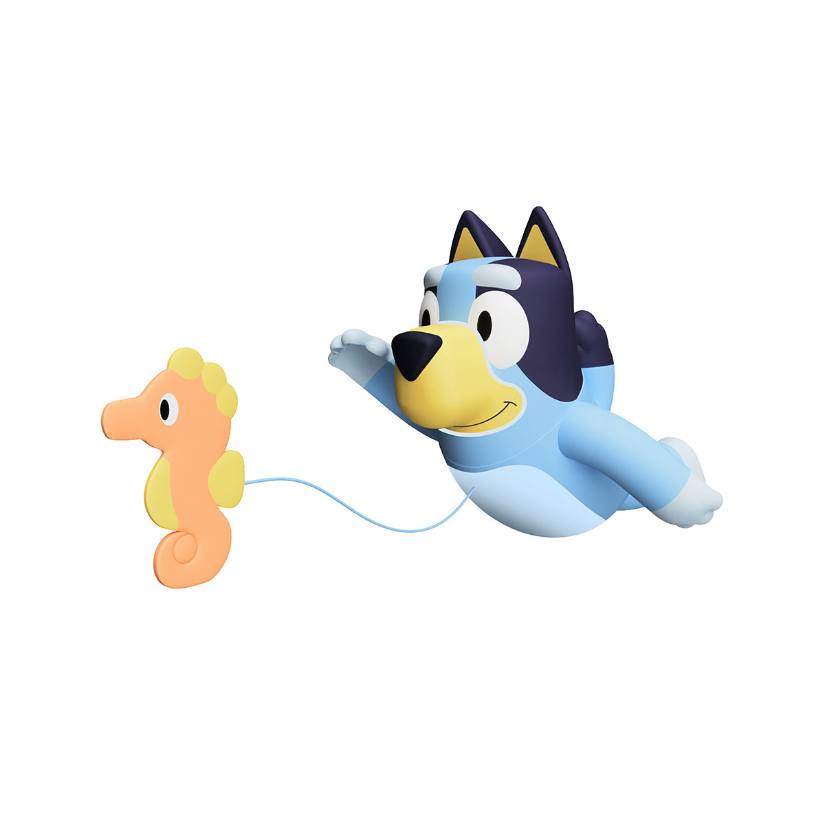 Place her face down in the water and she’ll do front crawl. Flip her over and she’ll show you backstroke. All the while, that cheeky seahorse just keeps getting closer until it’s time to do it all over again. Bluey has a big smile and comes in all the familiar shades of blue and yellow that kids know so well.