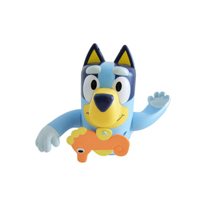 See Bluey from the hit TV series come to life in your very own bathroom! Swimming lengths in your tub will be no trial at all. All kids have to do is give a gentle tug on Bluey’s seahorse friend to extend the cable – then let go. Watch as Bluey’s arms start wheeling round and she starts swimming like she’s scared of a silly blue whale!